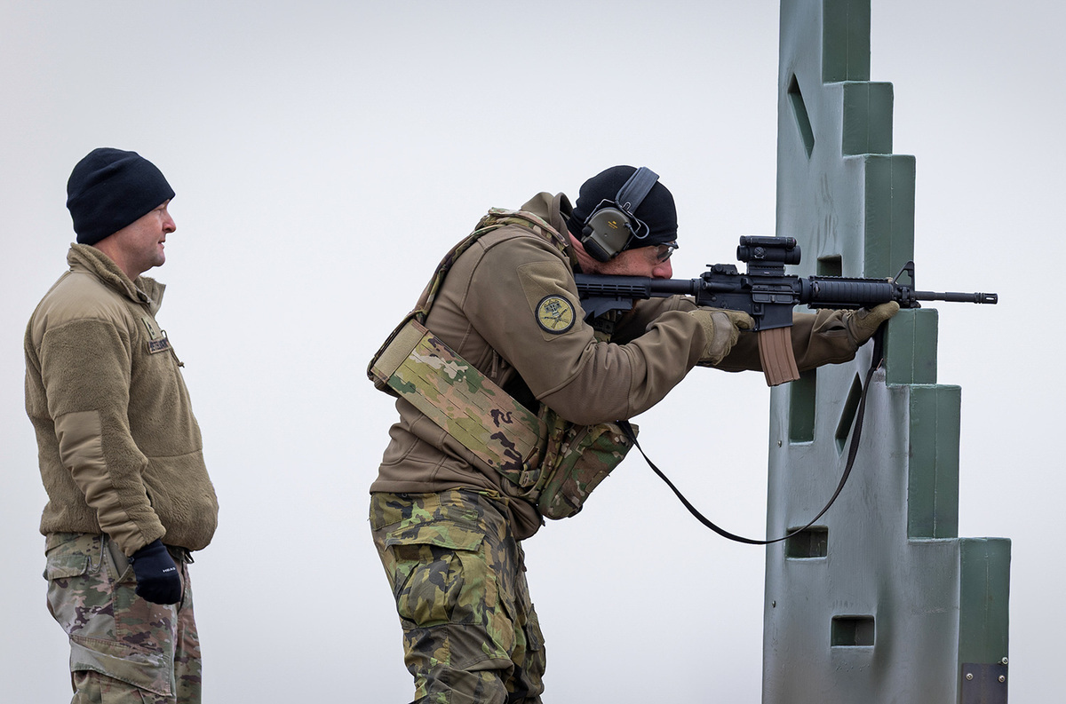 - střelba z pistole M17 a útočné pušky M4 na přesnost i vzdálenost,